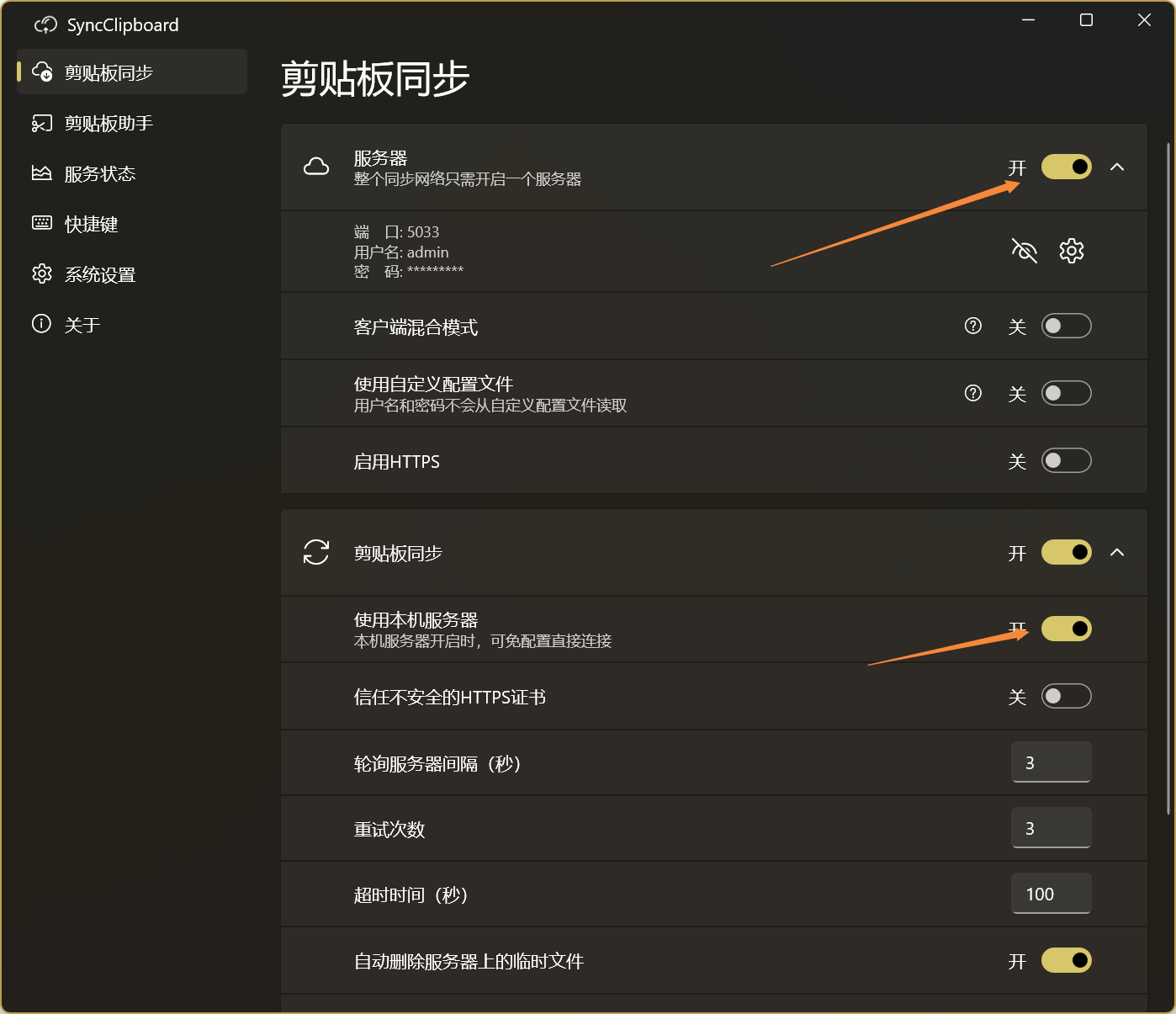 开启SyncClipboard软件本地服务器
